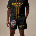 On the front, THEY NOT LIKE US blazes across the chest in red-gold-green gradient block letters—bold, proud, and unshakable. But the real story is rooted in the back.