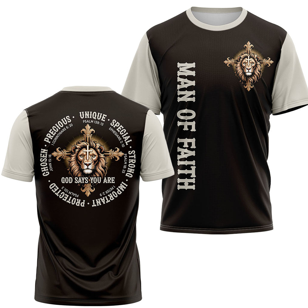 Front (T-Shirt): Bold “MAN OF FAITH” lettering across the chest — a powerful reminder of conviction, strength, and identity in Christ.