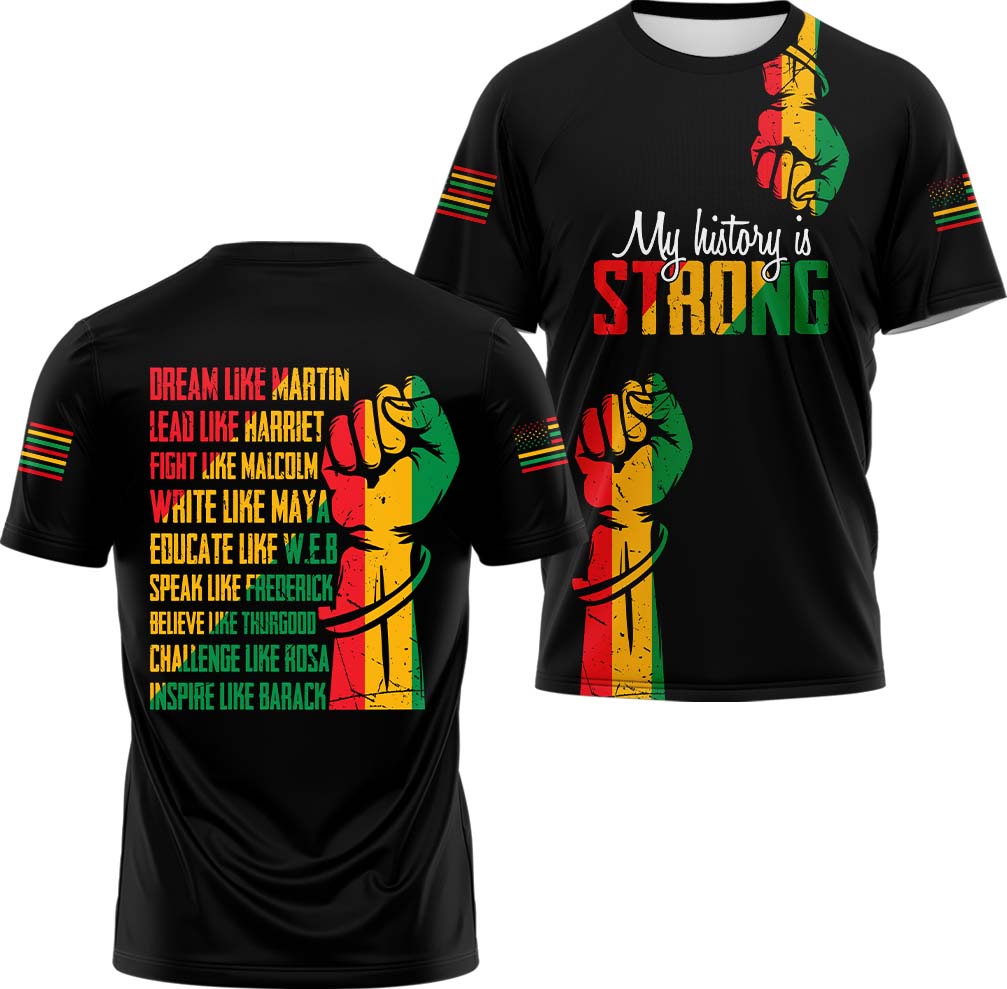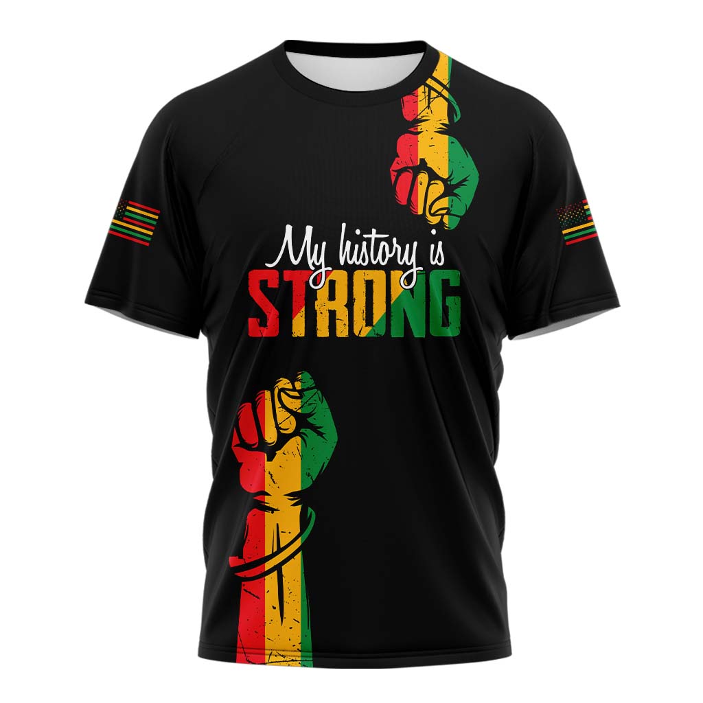 Bold “MY HISTORY IS STRONG” gold front print for maximum impact