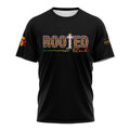 Bold “ROOTED IN BLACK” gold front print for maximum impact