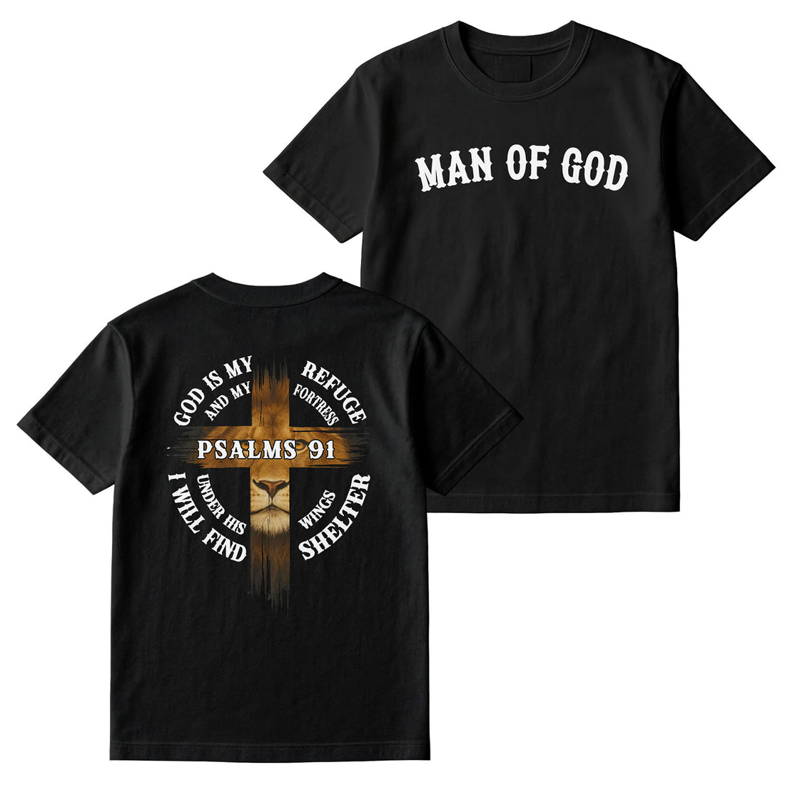The “Refuge” T-shirt carries a bold statement of faith and strength. Featuring Psalms 91—“God is...