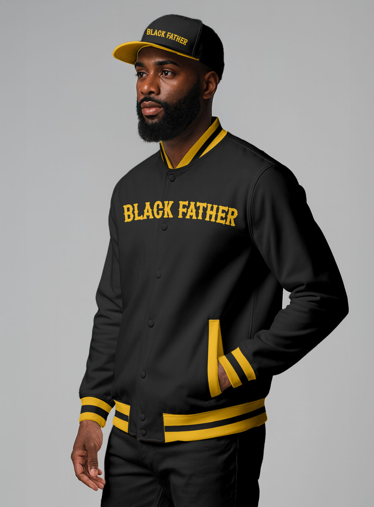 Black Father Baseball Jacket & Hat Bundle