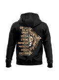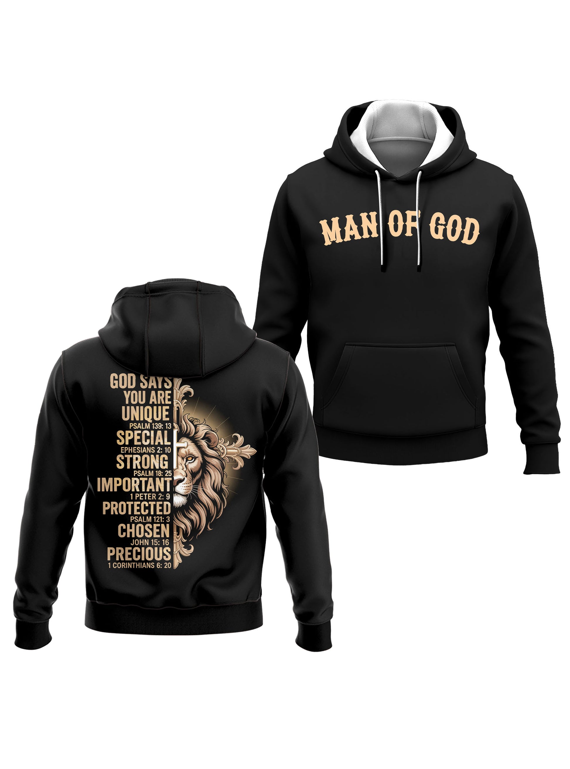 Meaning: This hoodie is more than fashion — it’s a declaration. A reminder that you are chosen, covered, and called to represent faith, family, and culture as a Black Man of God.