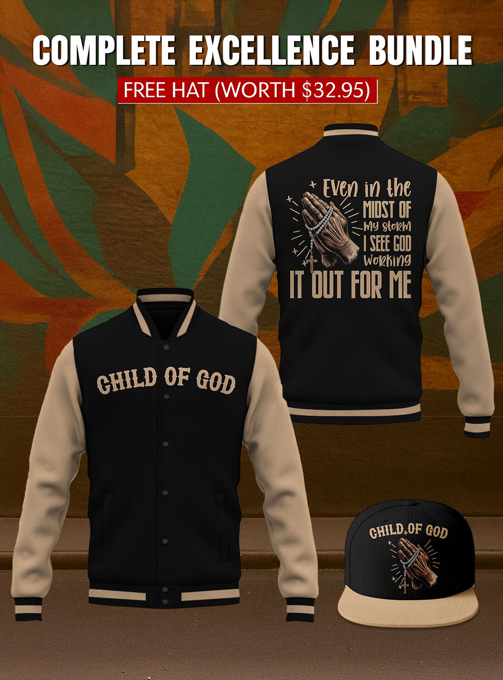 Stand tall through every trial. This premium varsity jacket + matching snapback set is a bold reminder that faith shines brightest in the storm.