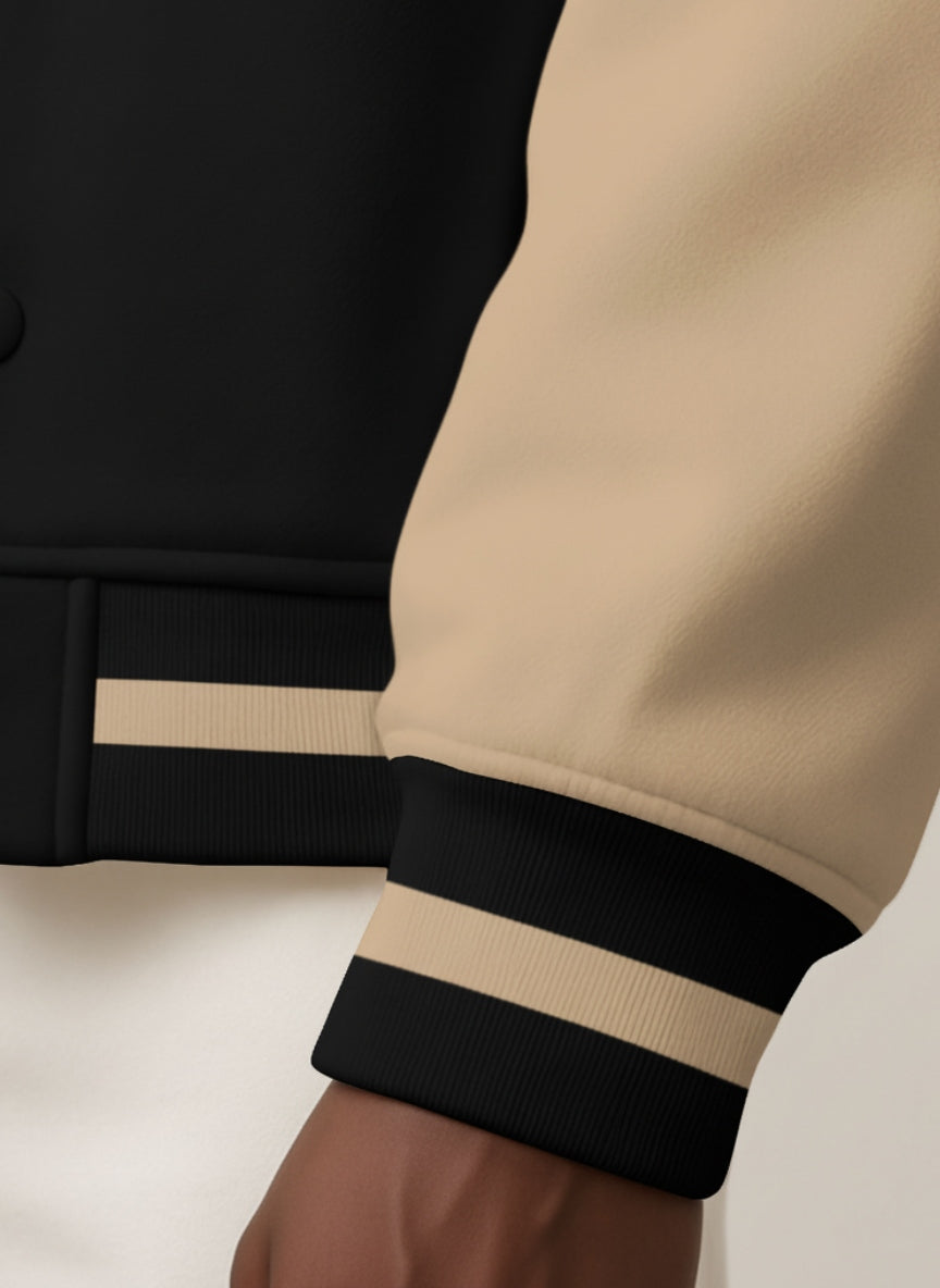 This is the ultimate modern varsity look. Crafted entirely from our Premium Scuba blend (95% polyester, 5% spandex), it offers a clean, sculpted silhouette that resists wrinkles and holds its shape impeccably. It provides essential stretch for comfort and a smooth, sophisticated finish. This jacket is the ideal layer for transitional weather—light enough for training, polished enough for a night out. Achieve that coveted aura of success with a crisp, timeless taste.