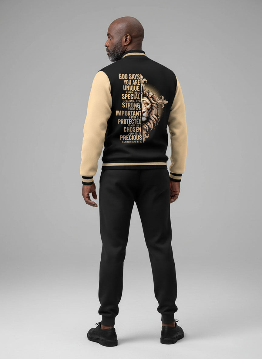 This isn’t just a jacket—it’s your daily armor. A tribute to the faith, pride, and legacy of Black men who walk boldly in purpose every day. When you wear Chosen Man, the world doesn’t just see style—it feels your conviction.