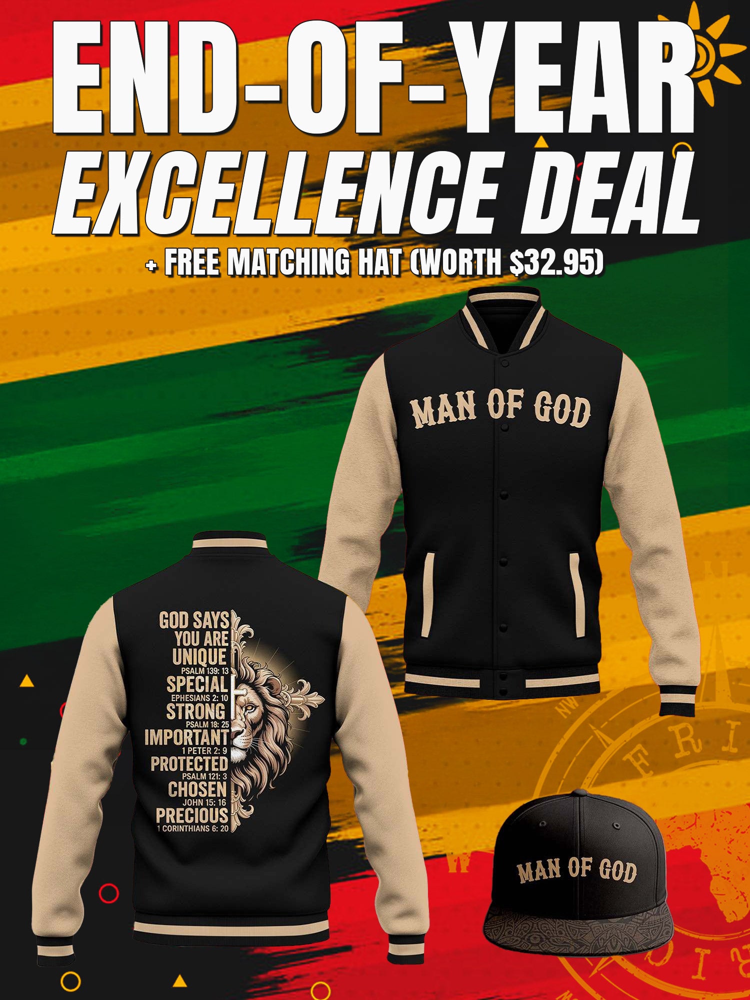 "Man of God" Black Gold Baseball Jacket & Hat Bundle