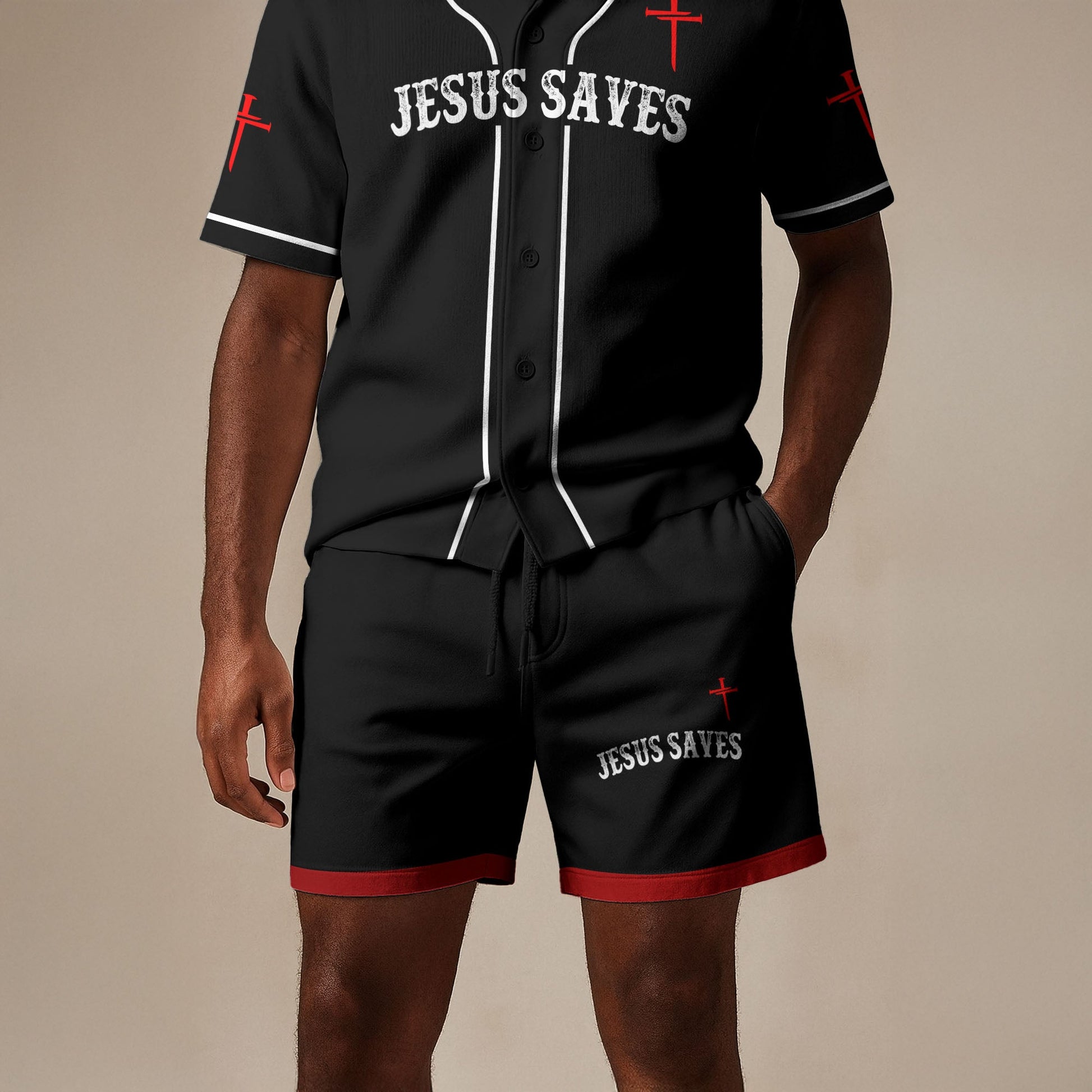 The “Redemption” Black Shorts carry a clean, powerful look designed to showcase faith with confidence. Crafted in solid black for easy everyday wear, they feature the bold message “Jesus Saves” paired with a red cross detail — a striking reminder of redemption and grace. Lightweight and comfortable, these shorts are perfect for workouts, lounging, or making a faith-filled statement on the go.
