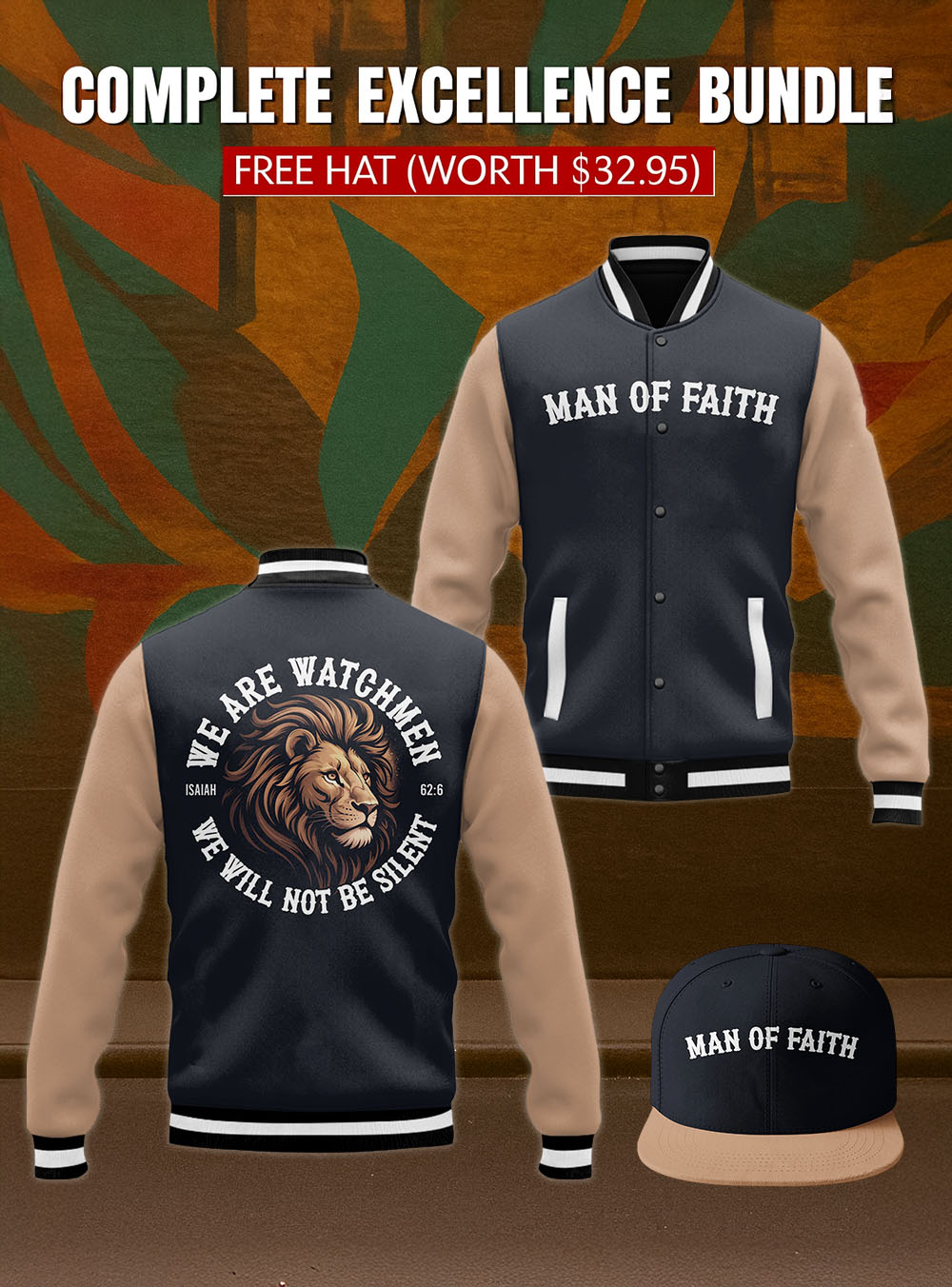 The âLion Watchmanâ Baseball Jacket + Hat Bundle was made for believers who stand firm, protect whatâs sacred, and move with the courage of the Lion of Judah. Itâs more than apparel â itâs armor for those who stay alert in spirit and unshaken in purpose.