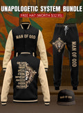 This 3-piece bundle brings together a varsity jacket, joggers, and a matching snapback — designed for the man who walks with purpose and carries his faith with pride.