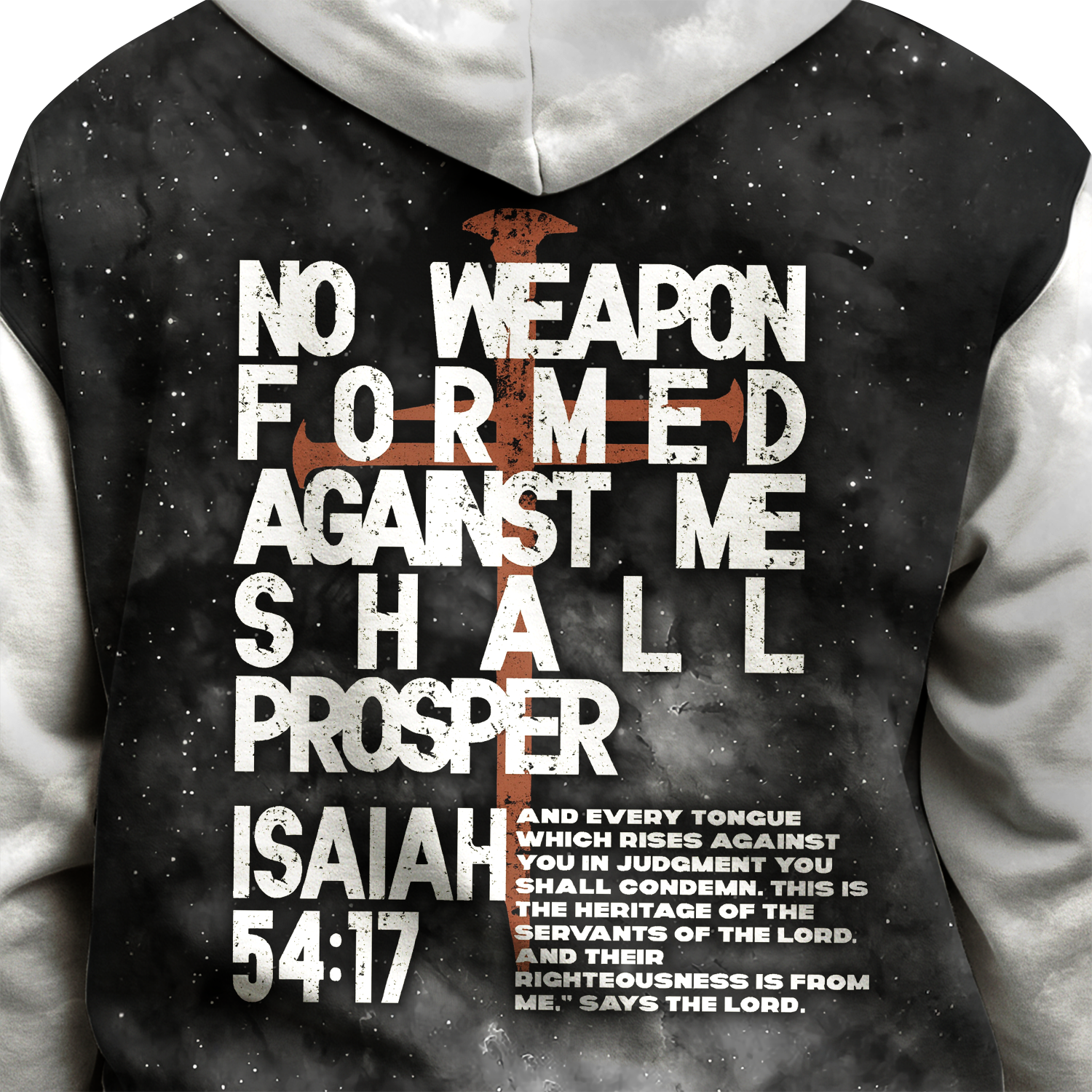 The “No Weapon” Hoodie & Jogger Set is a fearless declaration of God’s promise in Isaiah 54:17 — “No weapon formed against me shall prosper.” With striking artwork and scripture boldly displayed, this set embodies protection, resilience, and unshakable faith. Crafted from soft, durable fabric with a modern fit, it keeps you comfortable whether you’re relaxing, out and about, or standing firm in your walk with Christ. More than just an outfit, it’s a daily reminder that with God on your side, no weapon can prevail.