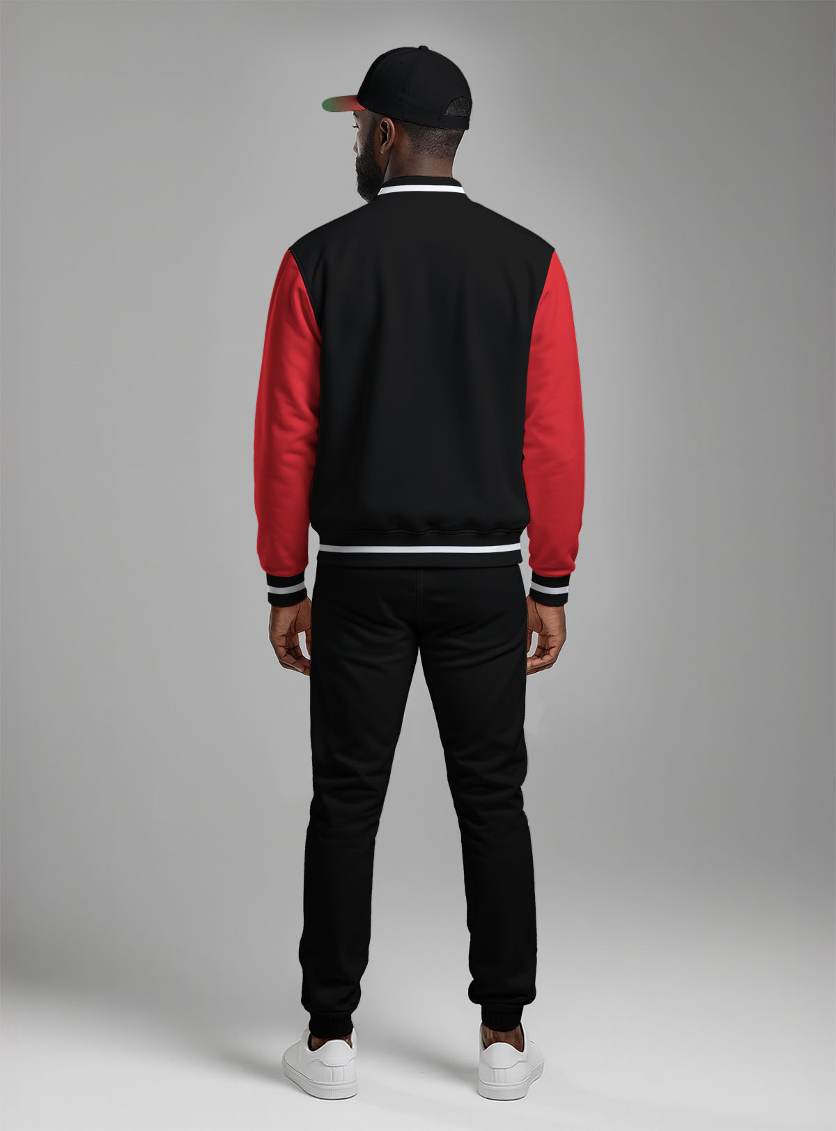 Design: Black body with rich red and green contrast sleeves, accented by gold detailing that channels Afrocentric pride and royalty. A head-turning fit that carries power in every stitch.