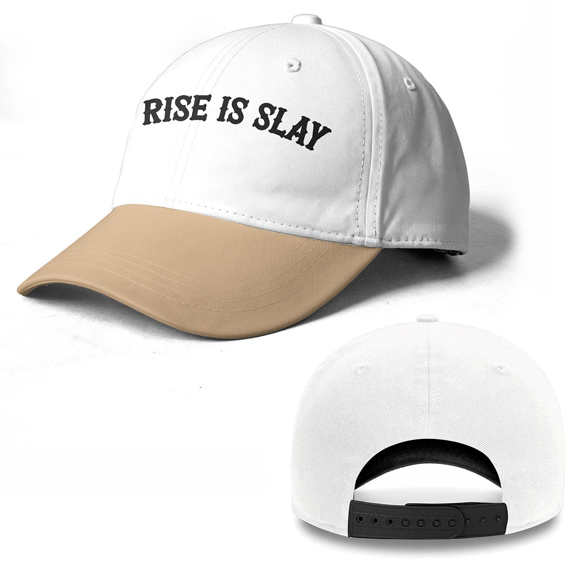 Design: Premium curved-brim cap with powerful “RISE & SLAY” lettering — clean, stylish, and full of motivation.