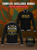 Bold in spirit. Unbreakable in faith. The “Strength” varsity jacket + matching hat set is made for believers who stand firm through every trial — walking in God’s power and courage.