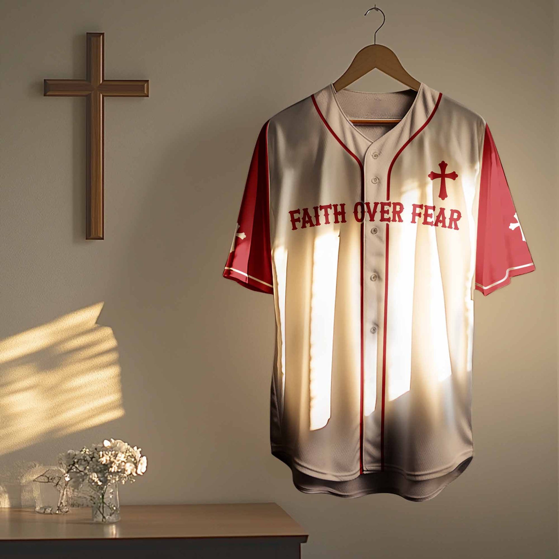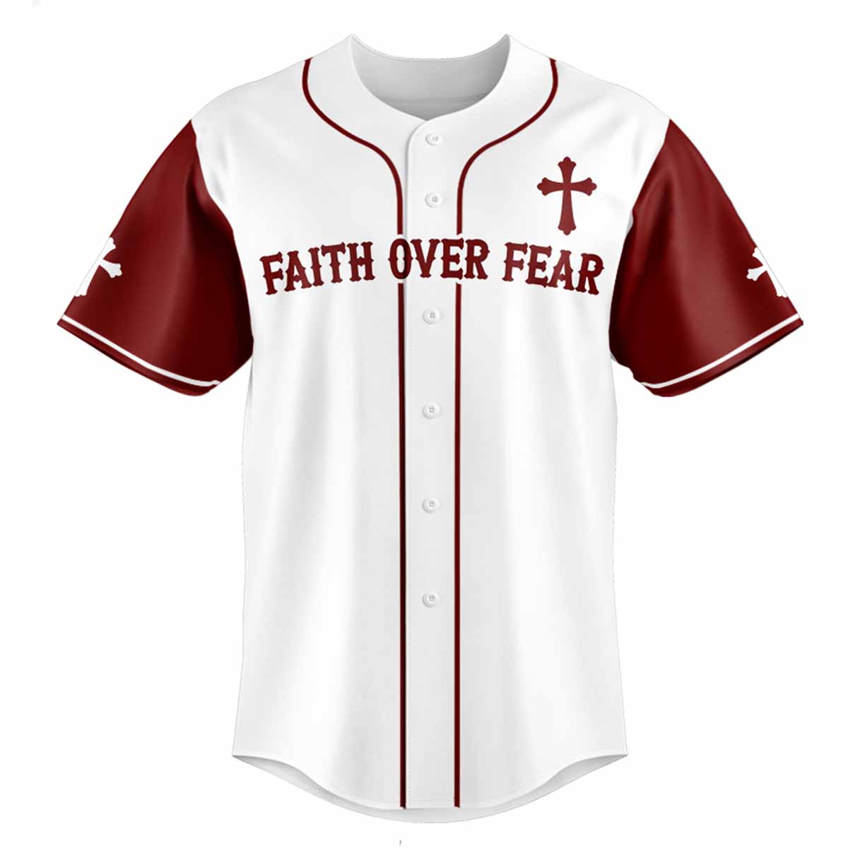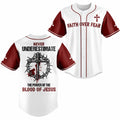 The “Fearless” Baseball Jersey carries a powerful reminder of faith with the bold “Faith Over Fear” message on the front and the striking cross-and-crown design on the back declaring “Never Underestimate the Power of the Blood of Jesus.” Crafted from breathable, lightweight fabric, this jersey blends comfort and style while letting you stand strong in your faith no matter where life takes you.