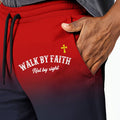 The “Faithwalk” Joggers bring a bold mix of comfort and conviction with their striking red-to-black gradient design. Featuring the powerful scripture-inspired words “Walk by Faith, Not by Sight” accented with a subtle cross, these joggers combine modern streetwear style with a timeless message of faith. Made from soft, breathable fabric with an adjustable drawstring waist, they’re perfect for workouts, lounging, or making a statement on the go.