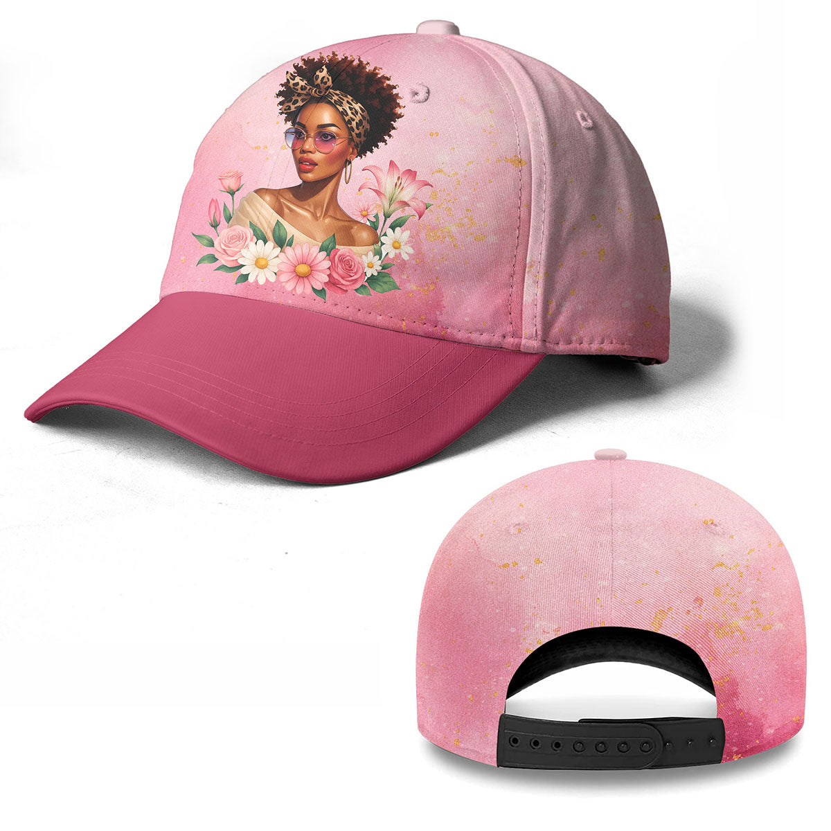 Cap: Matching curved-brim cap embroidered with “Woman of Faith” text and rose-gold stitching — the perfect finishing touch to crown your faithful look.