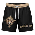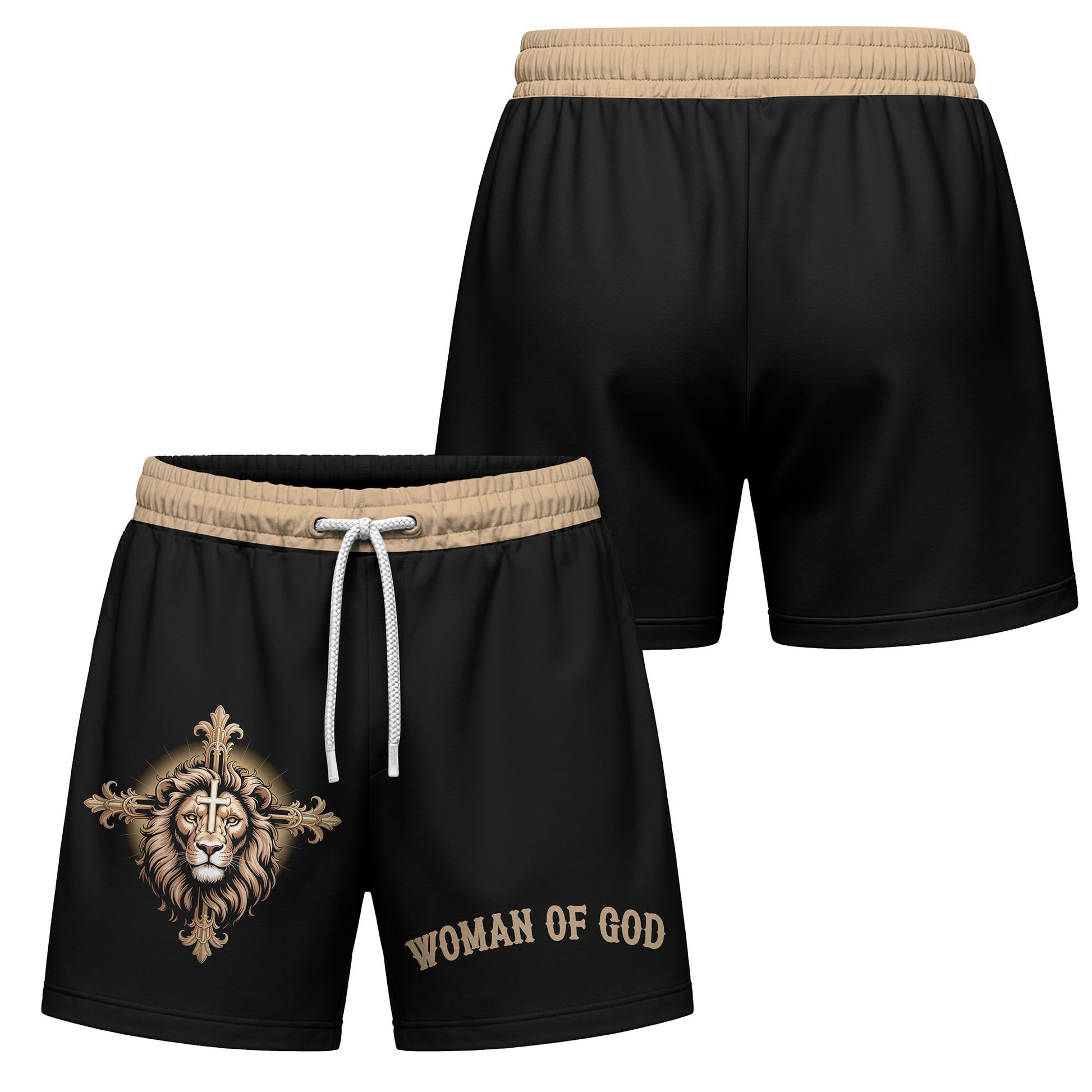 Design: Sleek black shorts with elegant “WOMAN OF GOD” lettering on the leg — a simple yet powerful expression of devotion and confidence.